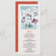 This cute christmas holiday dinner party menu features a Christmas town/village with people, houses, a church, trees, a car with a christmas tree on top, and a skating rink. The reverse side features a red background with white snow patterns. Personalize it for your needs. You can find matching products at my store.