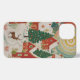 Nestled amongst snow-dusted evergreens, this festive village shimmers with holiday cheer. Did you know that the tradition of decorating Christmas trees dates back to 16th-century Germany? Here, charming red houses with snow-capped roofs peek out from the wintry landscape, while a gentle deer adds a touch of woodland magic. This design evokes the cozy warmth and timeless spirit of Christmas, perfect for capturing the season's enchantment.