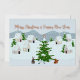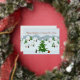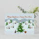 Peaceful snowy night in Christmas village elegant custom Christmas card with metallic details.