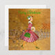 Christmas as it looked like in the 1950's with this retro artwork of a lady all dressed up in hat and full skirted dress in glittery red and green.