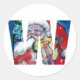CHRISTMAS W LETTER / SANTA WITH VIOLIN MONOGRAM CLASSIC ROUND STICKER