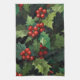 Christmas watercolor Holly berry leaves botanical Kitchen Towel