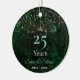 A cool girly Chic green silver faux glitter Christmas Wedding anniversary Ceramic ornament. Sparkly ,stylish and elegant beautiful inexpensive gift for couples celebrating their marriage. It’s an elegant wedding anniversary keepsake that can be personalized with your special anniversary information.