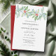 These Christmas wedding invitations feature elegant watercolor greenery and red berries, with your wedding details displayed in classic charcoal grey over a crisp white background. The template allows you to easily customize your names and wedding date using classic typography, creating a perfect blend of elegant and simple design. This botanical choice is ideal for winter weddings, offering a timeless and classic aesthetic. Order printed cards, a Christmas invitation sample, or opt for a paperless post.