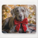 Christmas Weimaraner Dog With Red Bow Mouse Pad