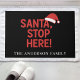 A black background, red text. Personalize and add your family name. Text: Santa, Stop here!