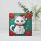A Christmas card that you can personalize with your own message. On the front is a cute white cat with a Santa hat and poinsettias.