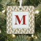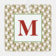 Christmas White Dove Holiday pattern in white, green, red on tan background and custom INITIAL in dark red. Easy to personalize text, text colour, font. Festive Holiday addition to ANY Home Decor. Mix and match entire Christmas / Dove / Holiday Collections by TMCdesigns.
