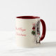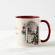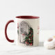 Christmas mugs with a vintage scene of a Christmas tree in front of a window lit by candle light at night time. Personalize Text, more sizes and colours available!