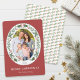 This festive Christmas holiday card showcases an oval photo framed with winter greenery and red berries. Personalize this modern elegant holiday card by adding your photo and family name.