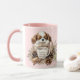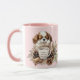ADORABLE WINTER WARMER! Cute Winter Christmas mug with the cutest Blenheim Cavalier King Charles Spaniel Puppy on the light pink snowy background. Easily personalize the text.