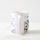 Beautiful Holiday mug with exquisite watercolor white festive Westie (also called Poodle and Terrier) wearing Santa hat and ornament on collar playing with ornaments o his side. Phrase "Christmas Wishes and Puppy Love Kisses" in blue modern hand written Script and block typography. Cute white puppy and rest of decor elements in blue, white and silver hues. Ability to add a message or name in the middle or erase. Great holiday gift for all dog lovers!