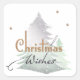 Christmas Wishes Evergreen Tree Stars Gold Border Square Sticker
