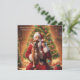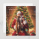 A personalized Christmas Card featuring a dog sitting on santa's lap and telling him what his christmas wishes are.