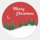 Get in the Christmas mood with this Christmas Woods Scene Round Sticker - fir trees with snow below and crescent moon above. The words "Merry Christmas" are fully customizable. Also available in another shape!