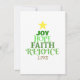 Christmas means many things to each of us. This Christmas tree card represents just a few of those ideas. The words joy, hope, faith, rejoice, and love form a Christmas tree topped with a yellow star. The back of the card has a coordinating green with white text that is ready to be customized with your personal touch.