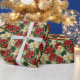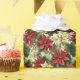 This holiday wrapping paper is shown with a festive poinsettias print.