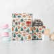 Christmas wrapping paper with candy canes and Christmas trees on it