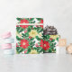 This holiday wrapping paper is shown with a festive poinsettias print.