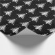 Christmas wrapping Paper is shown with a black and white Christmas trees print.