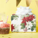 This holiday wrapping paper is shown with a festive poinsettias print.