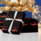 Holiday gift wrapping paper shown with a pretty black and red deer print.