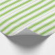 This Christmas wrapping paper is shown with a White background with a festival of Medium Apple Green stripes that are bold and striking wrapped and tied with a bow. Great choice for any occasion.