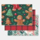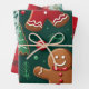 Christmas Design Wrapping Paper Sheets with Plaid, Reindeer, and Gingerbread Man Designs.