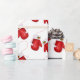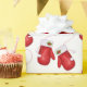 Holiday gift wrapping paper shown with a cute Christmas mittens print on a white background.