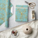 Holiday gift wrapping paper shown with a fancy pretty Golden swirls print on a Robbins Egg Blue background colour. Choose your background colour.
