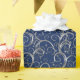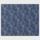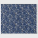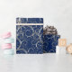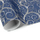 Holiday gift wrapping paper shown with a fancy pretty Silver-tone swirls print on a deep Blue background colour. Choose your background colour.