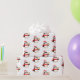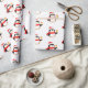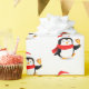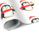 Wrapping paper shown in a cute festive Christmas penguin print. Matte paper shown