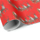 This Christmas wrapping paper is shown with a cute holiday Santa and reindeer print.