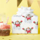 This Christmas wrapping paper is shown with a cute holiday snowman print.