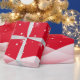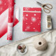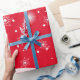 Christmas Wrapping Paper with Christmas Snow Mountain and White Snowflakes on Red Background. Happy Merry Christmas and New Year beautiful Wrapping Paper for Lovely Christmas gifts. XMAS Wrapping Paper decorated with Christmas magic symbols, winter snowflakes, holiday gifts elements pattern, snowman, christmas tree, christmas ball, snowflakes and more festive characters. Original trendy graphic design.
