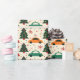 Brightly decorated wrapping paper features vibrant trees, colourful cars, and snowflakes, creating a joyful holiday atmosphere perfect for gift-giving this season.