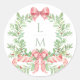 Christmas Wreath Candy Cane Bow | Monogram Wedding Classic Round Sticker