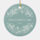 A festive photo ornament created to coordinate with the "Christmas Wreath" holiday collection. Photography © Storytree Studios, Stanford, CA