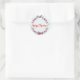 This classic round sticker features a festive wreath design perfect for adding a touch of holiday cheer to any item. At the centre, the words "Merry Christmas" are written in a bold, cursive font in a cheerful red hue, capturing the essence of the season's joy and warmth. Encircling the greeting, a decorative array of winter flora, including red holly berries, dark green leaves, and charming blue flowers, creates a traditional wreath motif.