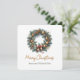This festive wreath-themed flat card features a "Merry Christmas" greeting in gold script, complemented by a holiday message on the reverse. It is easily personalized with your signature and serves as an editable template to suit your specific requirements.