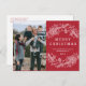 A festive holiday photo postcard with a bold wreath illustration. Photography © Storytree Studios, Stanford, CA