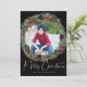 Christmas Wreath Photo Frame on Black Holiday Card