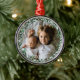 Custom photo encircled with a winter floral wreath paired with a custom script on the bottom. Check out our store for more ornament options.