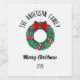 Christmas Wreath Red Bow Lights Personalized Name Wine Label
