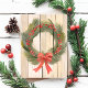 Christmas Wreath Red Bow | Pretty Pine Watercolor Holiday Postcard