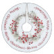 Christmas wreath with branches and red berries Brushed Polyester Tree Skirt. This festive tree skirt showcases a beautiful Christmas wreath made of branches with muted greenery and adorned with vibrant red berries. Surrounding the wreath, you'll find the cheerful greeting 'Merry Christmas' displayed in a rich, deep red colour, adding a warm and inviting touch to your holiday decor. The brushed polyester material not only enhances the overall look but also provides a cozy feel, making it a perfect addition to your Christmas celebrations.