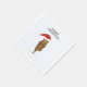 This happy holiday paper napkin has a tabby cat wearing a christmas santa hat and performing a yoga tree pose. The greeting is simply "MERRY CHRISTMAS" or you can edit this to suit. The background is a very pale light blue.