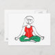 Holiday yoga t-shirts, cards and gifts for Christmas and the Holidays. Picture of a women in seated yoga pose wearing Christmas coloured red and green patterned clothing. Add text to personalize these yoga holiday products.