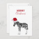 Christmas Zebra Funny Animal with Santa Hat Holiday Postcard