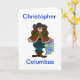 Here's the other version we have of Christopher Columbus.  We didn't give him any moustache this time and he looks a little younger. We did give him his map per se.  Apparently, it didn't work. So on this card we spoof the fact he got lost (and history recorded it!)  However, you're free to change the wording and customize this to say whatever you'd like it to.  TO CUSTOMIZE:  (1) Click the "Customize It button.  (2) Click "Add Text.  (3)  Type What You Want  (3) To change the font styles, click the "F" box and a pop-up menu will appear with lots of font designs.  (4) To change the font colour click the black box and another pop-up menu will appear with lots of colours.  (5) To size text  (or images) use the + and - buttons.  (6) To move text (or images) around, use the arrow keys or... go to the top left and click into the "Design" mode.  Your mouse then makes moving things easier.
